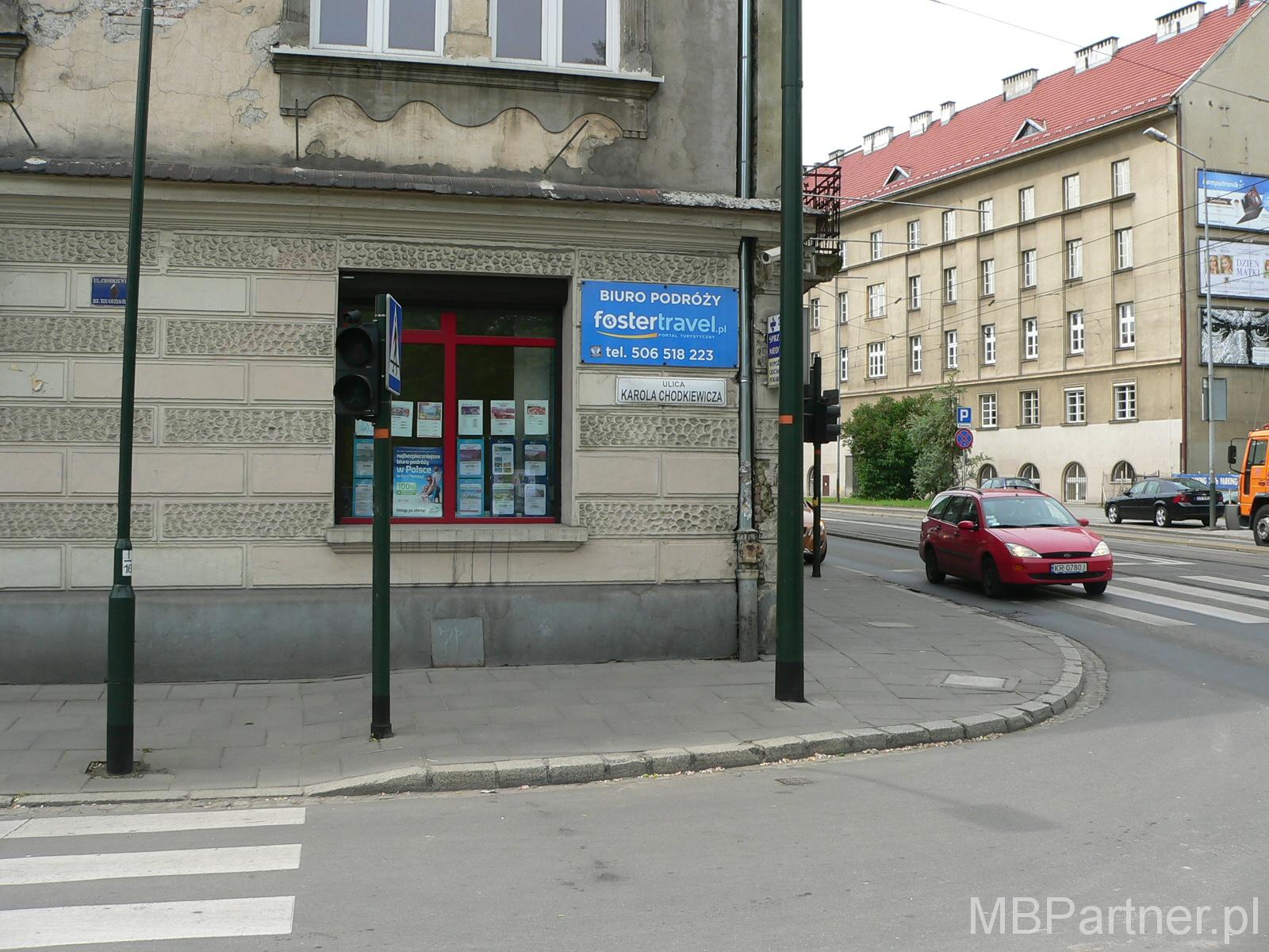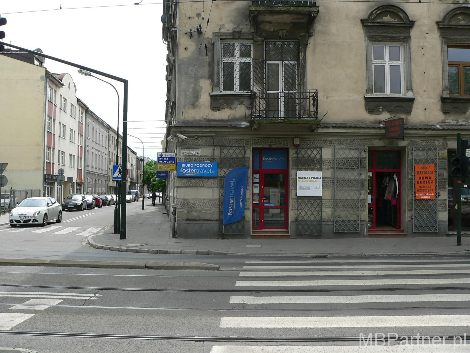 Kraków, ul. Grzegórzecka. Do wynajęcia frontowy lokal użytkowy, o powierzchni ok. 22 m2, położony w parterze usługowym solidnej kamienicy. Składa się z jasnego i przestronnego pomieszczenia, aneksu kuchennego oraz węzła sanitarnego. Lokal narożny, dzięki dużym przeszkleniom (duże drzwi frontowe z doświetlem oraz okno – witryna 4m2) jest dobrze wyeksponowany na ulicę Grzegórzecką i świetnie z niej widoczny. Usytuowany na wprost przejścia dla pieszych. Doskonale nadaje się do prowadzenia działalności handlowej, biurowej lub usługowej. W bliskim sąsiedztwie zespół kliniczny Collegium Medicum UJ oraz Liceum Ogólnokształcące nr 8. Lokal w idealnym stanie technicznym – nie wymaga jakichkolwiek nakładów finansowych. Wyposażony jest w niezbędne instalacje, w tym również alarmową oraz szereg innych zabezpieczeń tj. roletę zewnętrzną, szkło antywłamaniowe. Dostępny jest tani internet. Cena wynajmu 1350 zł + opłaty eksploatacyjne 150 zł miesięcznie + prąd. Prowizja dla biura 1/2 miesięcznego czynszu.
