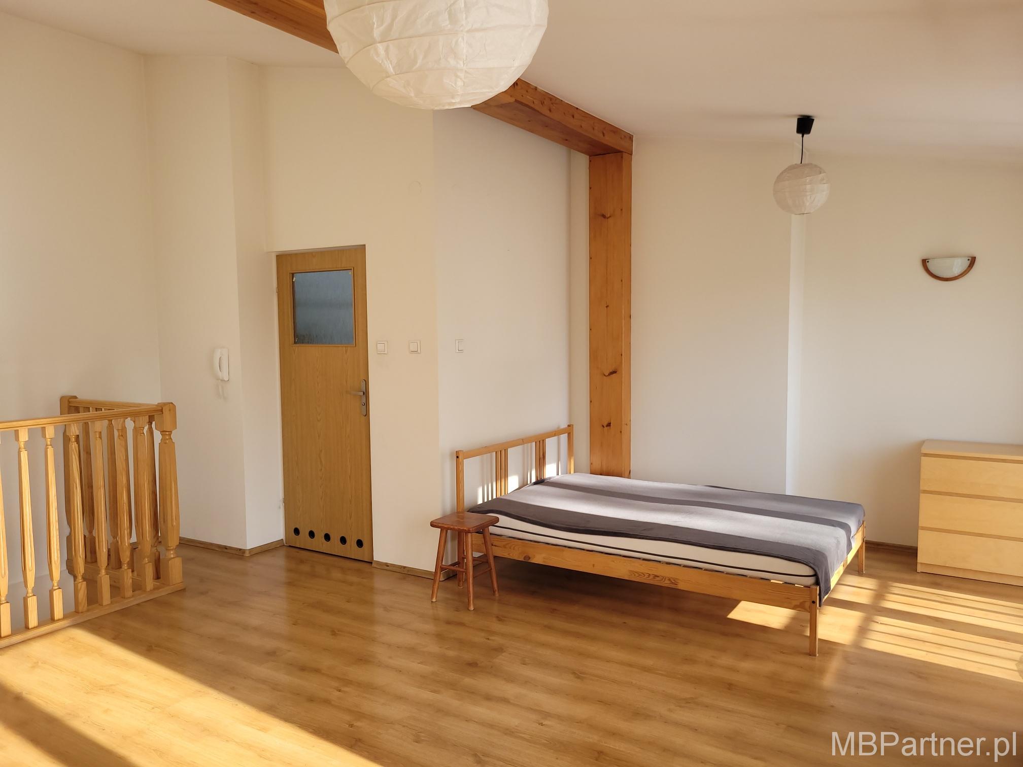 Kraków – Krowodrza, ul. Kawiory – bliskość krakowskich uczelni oraz miasteczka studenckiego. Ciekawe mieszkanie w budynku plombowym z 2003 roku, w cichej, ślepej uliczce. Lokal dwupoziomowy, bez skosów, położony na III piętrze. Na I poziomie znajduję się jasna kuchnia z aneksem jadalnym, otwarty salon z wyjściem na balkon oraz w.c. Na II poziomie dostępnym po wejściu drewnianymi schodami duża, otwarta przestrzeń + łazienka ze świetlikiem w dachu, w.c. oraz kabiną prysznicową. Całe pomieszczenie bardzo jasne, z wyjściem na balkon za pośrednictwem dwojga drzwi balkonowych. Tę dużą przestrzeń można z łatwością podzielić ścianką z suchego tynku na dwa niezależne pokoje (zgodnie z pierwotnym projektem – rzut załączony). Na podłodze panele, łazienka i w.c. w ceramice. Kuchnia umeblowana i wyposażona w AGD – wszystko działa. Mieszkanie w zależności od potrzeb do remontu lub odświeżenia. Powierzchnia całkowita mieszkania wynosi 66,12 m2. Centralne ogrzewanie i ciepła woda z MPEC-u. Czynsz miesięczny 644 zł w tym opłaty administracyjne, woda ciepła, zimna, centralne ogrzewanie i śmieci. Dodatkowo płatny jedynie prąd. Świetna infrastruktura okolicy, liczne sklepy, uczelnie, szkoły, przedszkola, tereny rekreacyjne – Park Jordana, Błonia Krakowskie. Z uwagi na bliskość uczelni i miasteczka akademickiego mieszkanie świetne również pod wynajem. Oferta atrakcyjna, dobra cena 980 000 złotych – do negocjacji, gorąco polecam. Pośrednik odpowiedzialny za ofertę Mariusz Nowak licencja 2371, telefon kontaktowy 508 144 300.